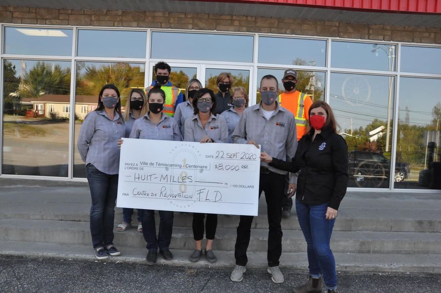 Francine and Luc Desrochers, owners of the FLD Renovation center accompanied by all their employees, as well as Michelle Fortin Vice-President of the centennial Committee