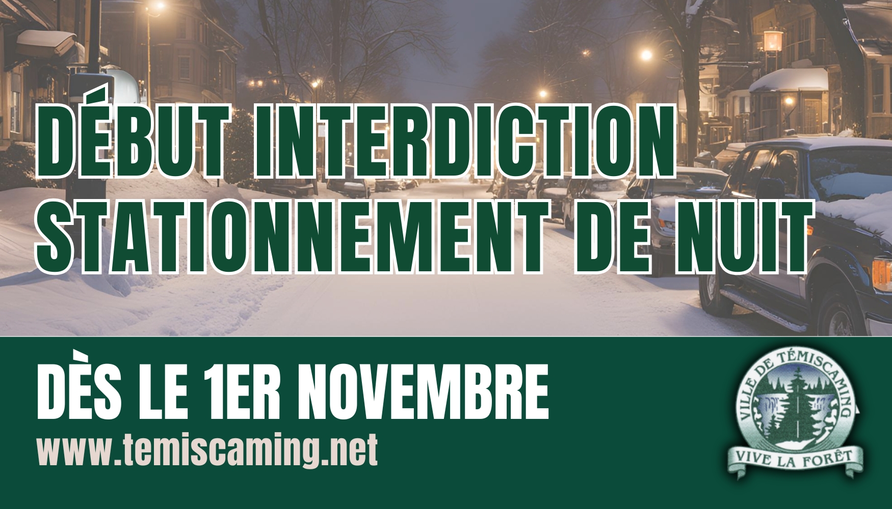 We would like to remind everyone that as of November 1st, parking on the streets will be prohibited to facilitate snow removal. This measure is governed by municipal regulations, and adherence is essential for everyone's safety.