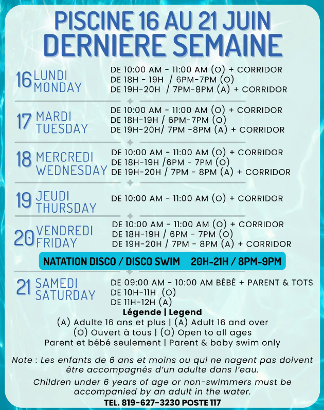 DERNIÈRE SEMAINE À LA PISCINE MUNICIPALE !