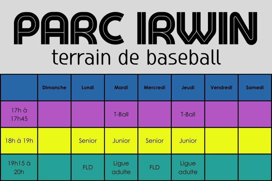 BASEBALL | Voici l'horaire de la saison de baseball qui débute le lundi 22 mai 2023. Pour toute question ou pour faire une réservation du terrain de baseball, communiquez avec le Centre au 819 627-3230.