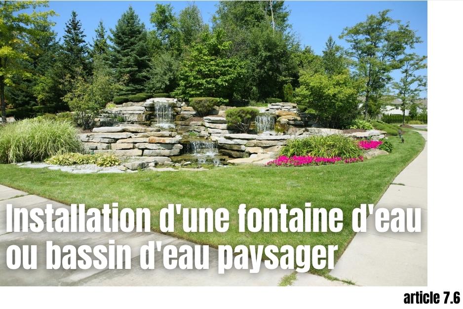 Vous songez à installer une fontaine d'eau ou un bassin d'eau paysager? Selon l'article 7.6, si c'est le cas, il faut s'assurer que le système est équipé d'un système de recirculation, car il est interdit d'utiliser de l'eau potable en continu.