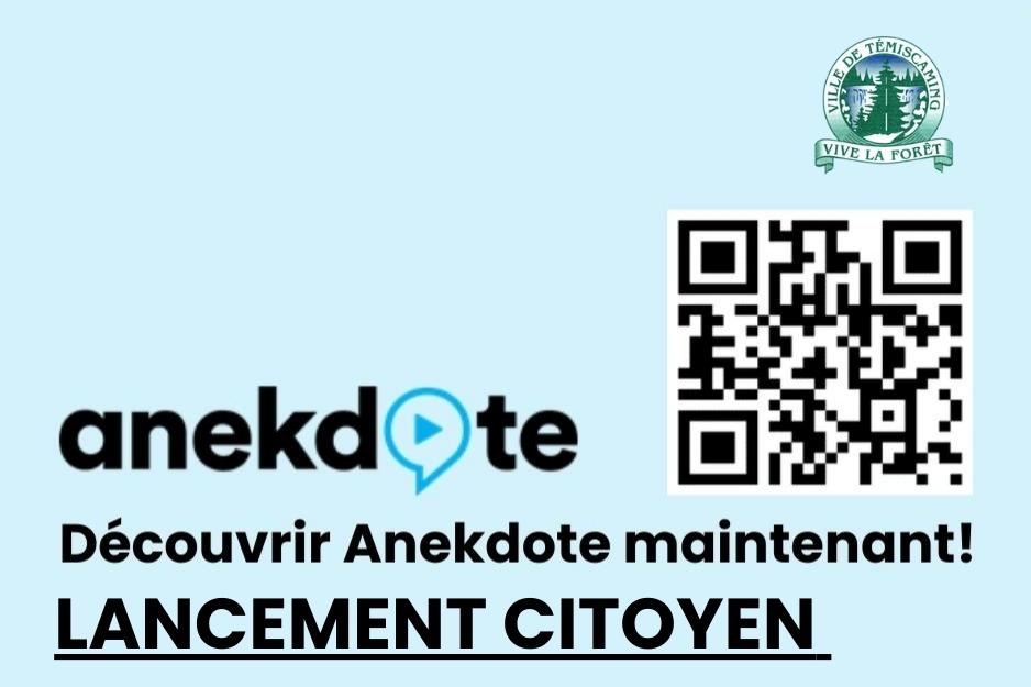 SEMAINE DE LA MUNICIPALITÉ | La Ville de Témiscaming est heureuse d'inviter ses citoyens à assister au lancement officiel de l'application Anekdote.