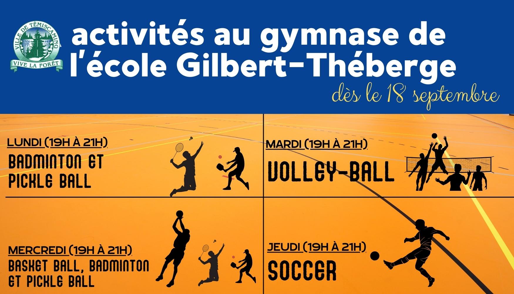 ACTIVITÉS AU GYMNASE DE L'ÉCOLE GILBERT-THÉBERGE | DÈS LE 18 SEPTEMBRE