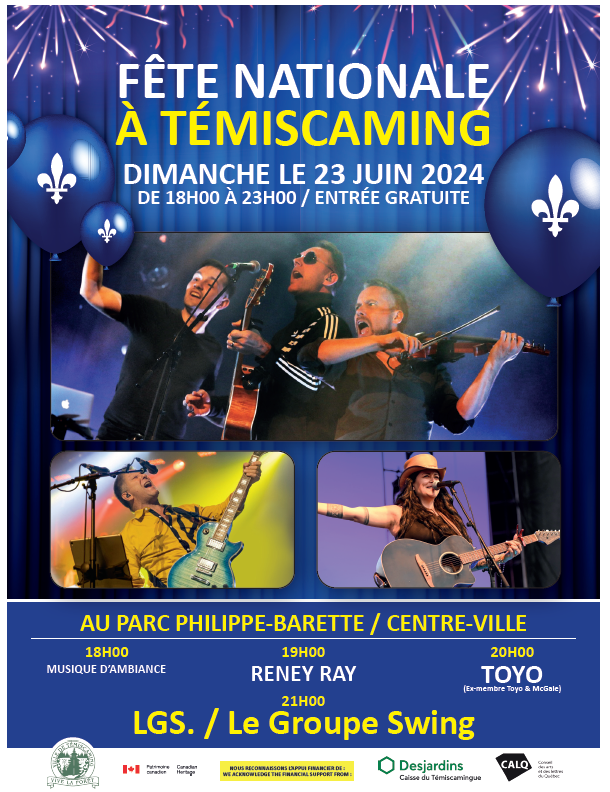 La Ville de Témiscaming a le plaisir de vous annoncer le dévoilement de la programmation de la Fête nationale au Parc Philippe-Barette.