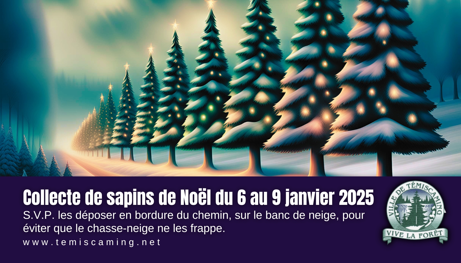 Consigne importante : Veuillez déposer votre sapin en bordure du chemin, sur le banc de neige, pour éviter qu'il ne soit endommagé par le chasse-neige.