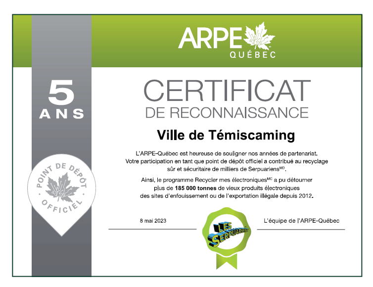 POINT DE DÉPOT OFFICIEL - ARPE QUÉBEC
