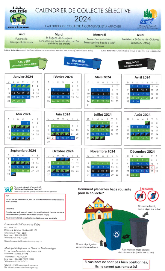 Pour plus d'information sur la gestion des matières résiduelles, référez vous à la page web de la MRC de Témiscaming au
