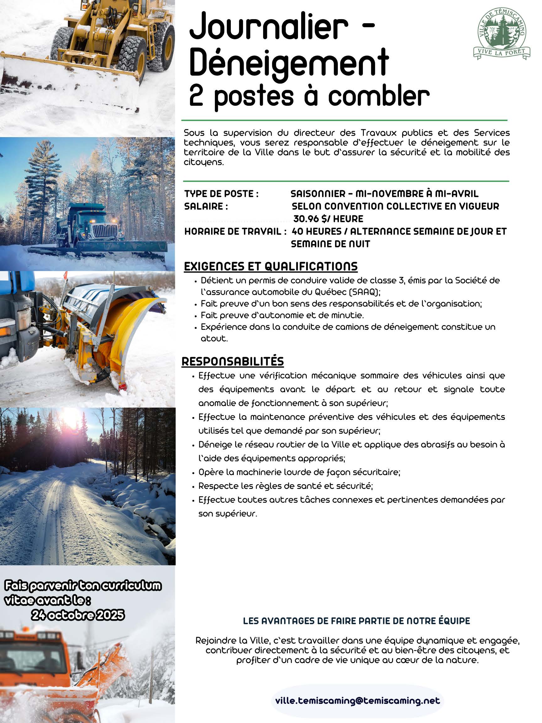 JOURNALIER - DÉNEIGEMENT (2 POSTES)