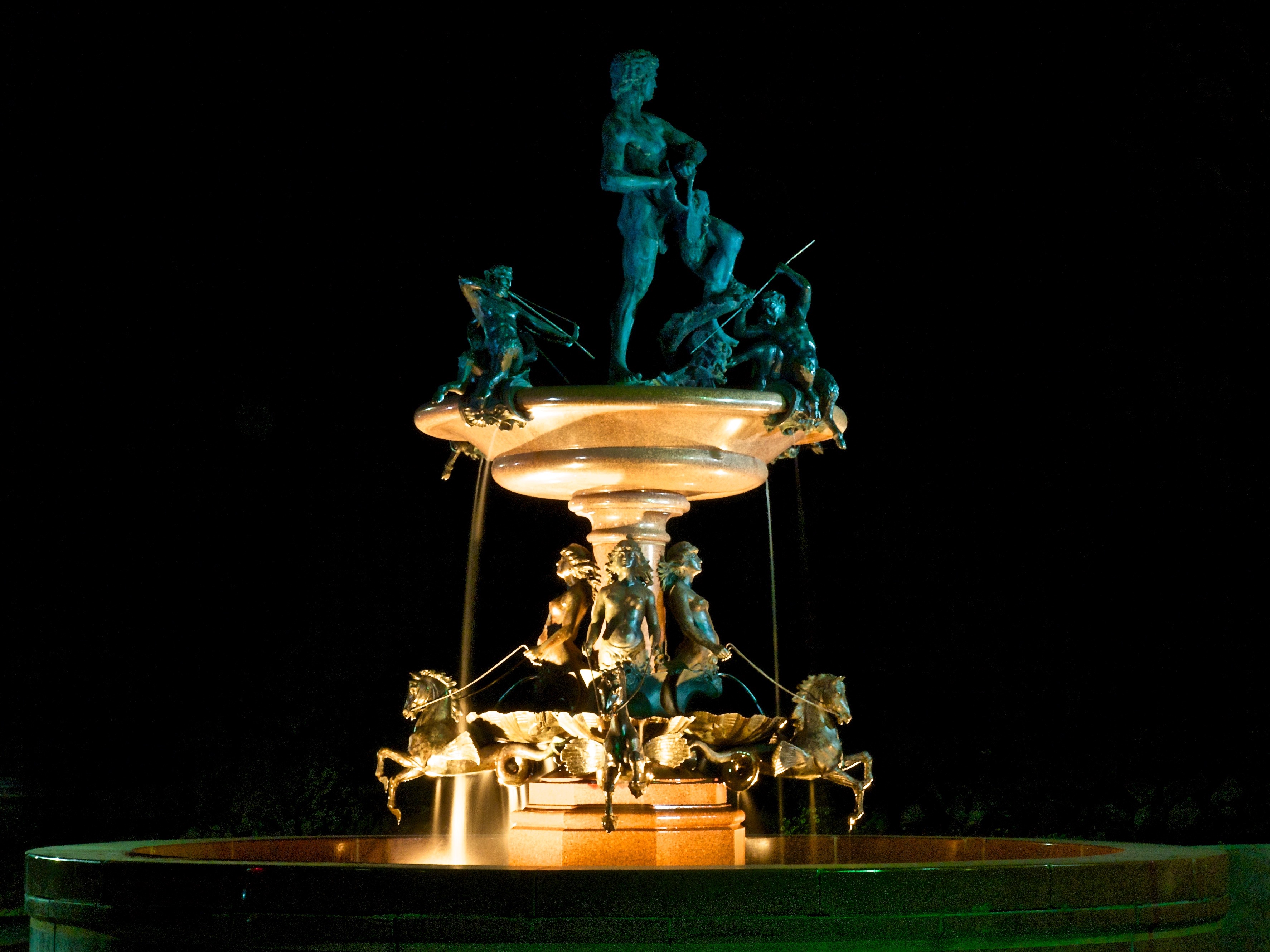 Elles sont l'oeuvre d'un artiste Toscan. Le puits est ornementé de très belles figures de danseuses. Il s'élève sur une base de marbre florentin. Quant à la fontaine, elle est surmontée de la statue de Neptune et entourée de figures mythologiques.