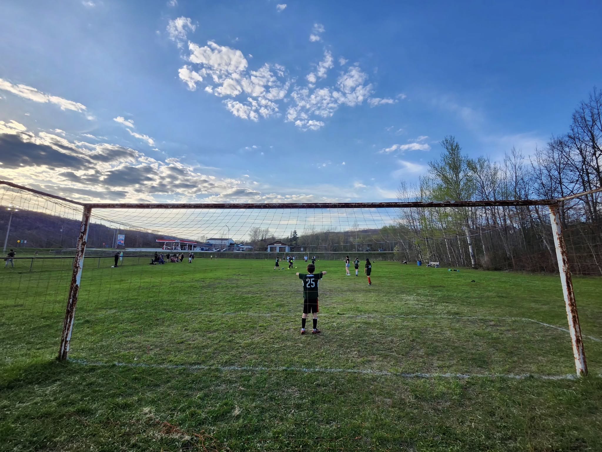 L'avant champ est recouvert de poussière de pierre et le champ extérieur est gazonné. On y retrouve l'éclairage nécessaire pour les parties en soirée ainsi que deux abris pour les équipes.